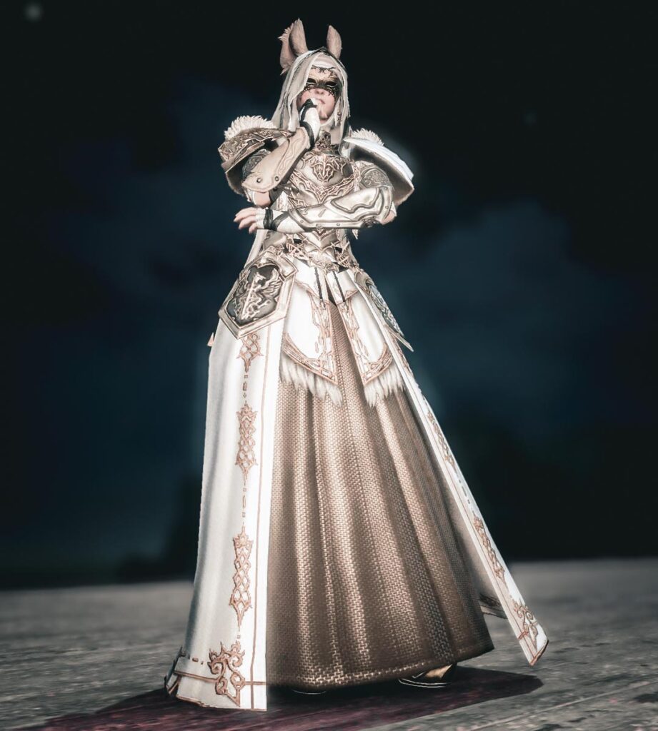 Body: Fierce Tyrant’s Cuirass (Dyes: Channel 1: Snow White, Channel 2: Pearl White)