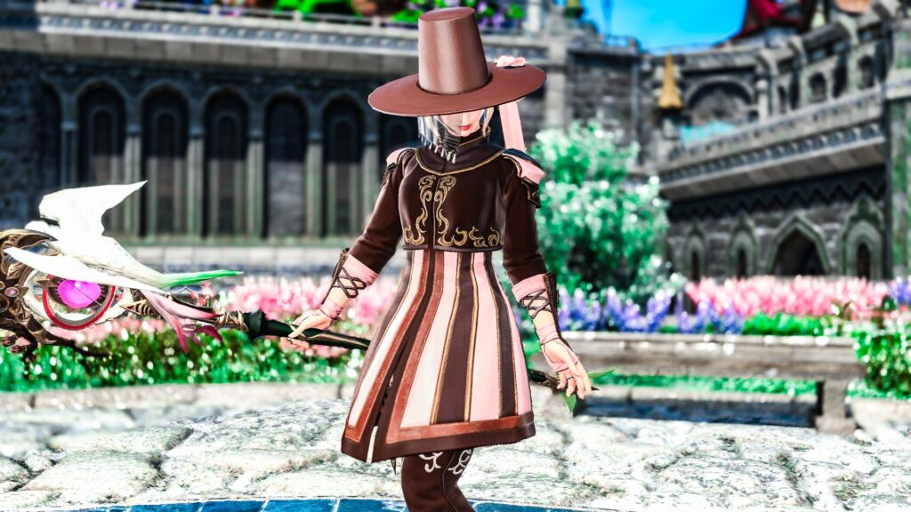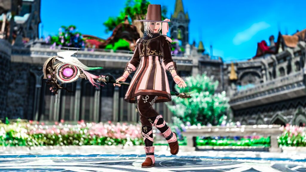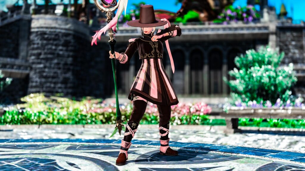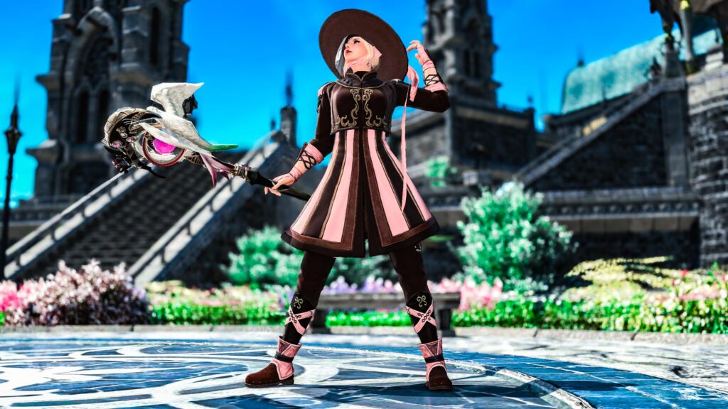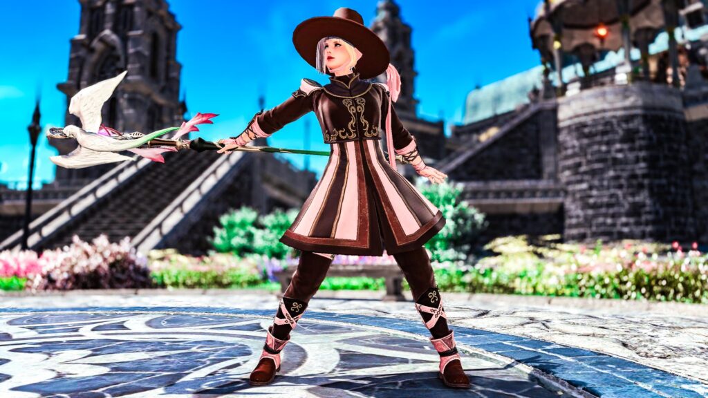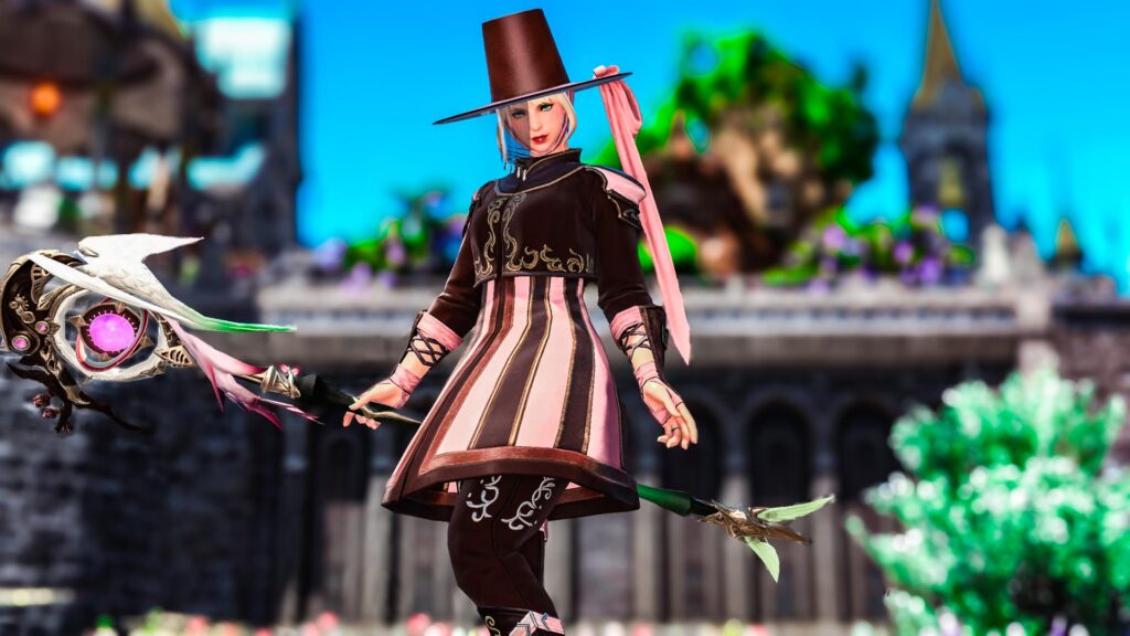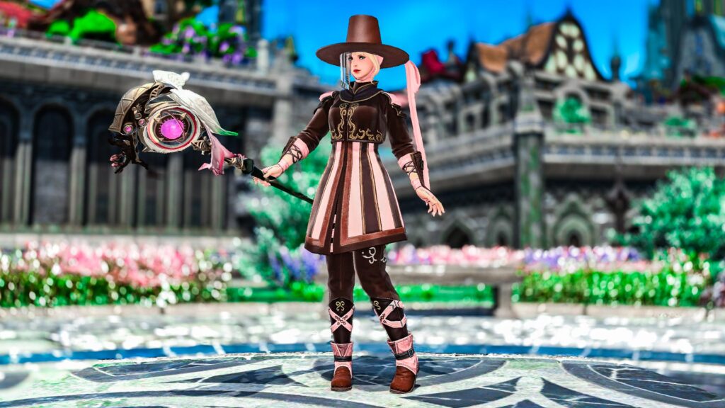 Body: Orastery Robe of Casting (Dyes: Channel 1: Kobold Brown, Channel 2: Rose Pink)